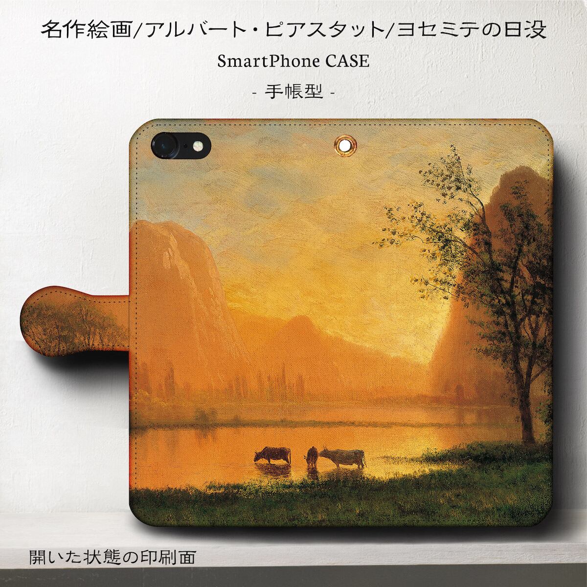 iPhone7 ケース iPhone8 スマホケース 手帳型 絵画 全機種対応 ケース 人気 あいふぉん ケース 丈夫 耐衝撃 アルバート ビアスタット ヨセミテの日没 | 個性派スマホケース NatureMate