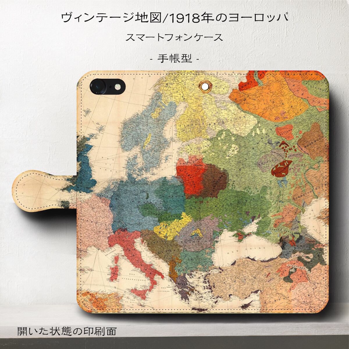 手帳型 ケース スマホ ケース ヴィンテージ 世界地図 1918年 ヨーロッパ iPhone8 ケース iPhone X ケース Android ケース Android Xperia | 個性派スマホケース NatureMate