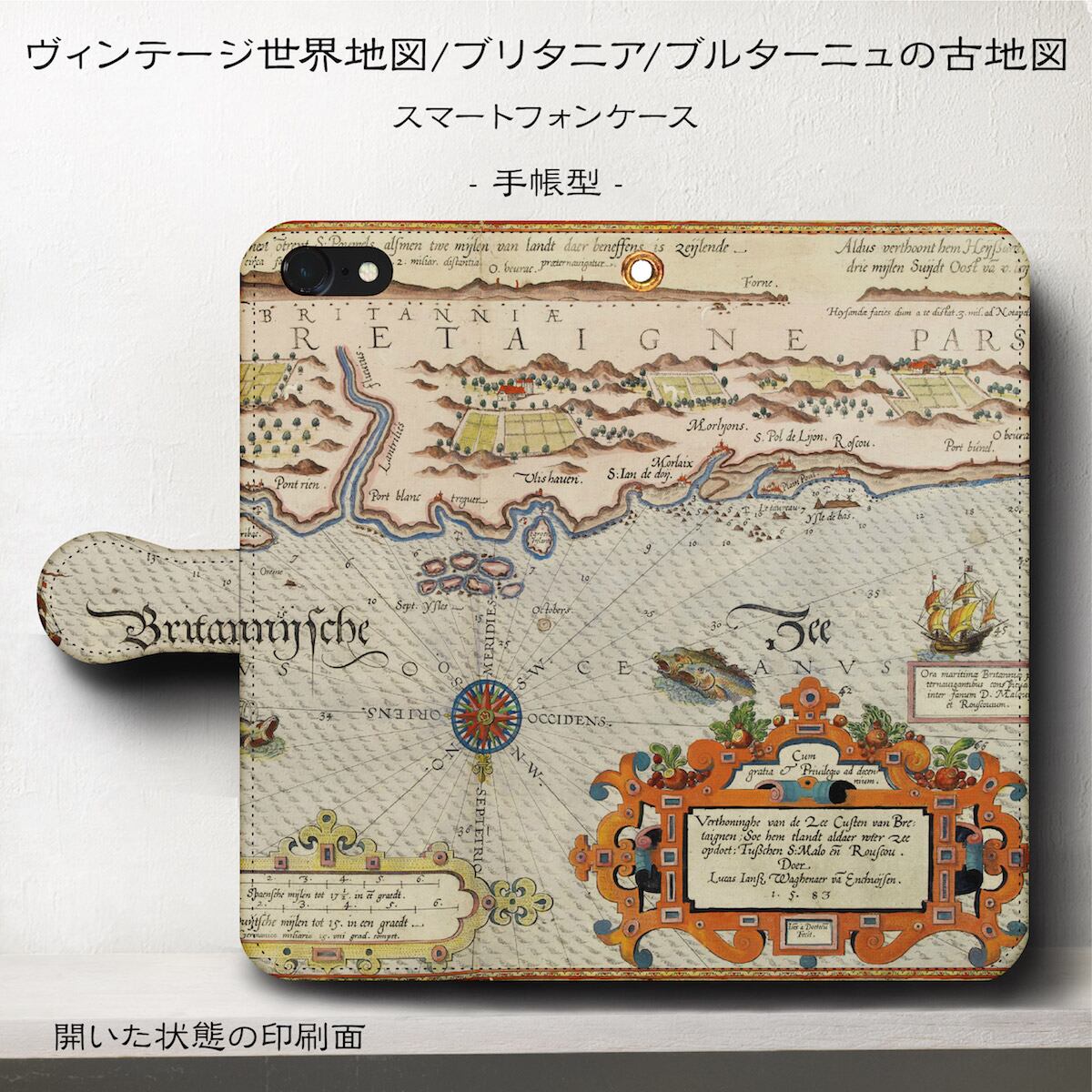 手帳型 ケース スマホ ケース ヴィンテージ 世界地図 ブリタニア ブルターニュ 古地図 iPhone8 ケース iPhone X ケース Android ケース Android | 個性派スマホケース NatureMate