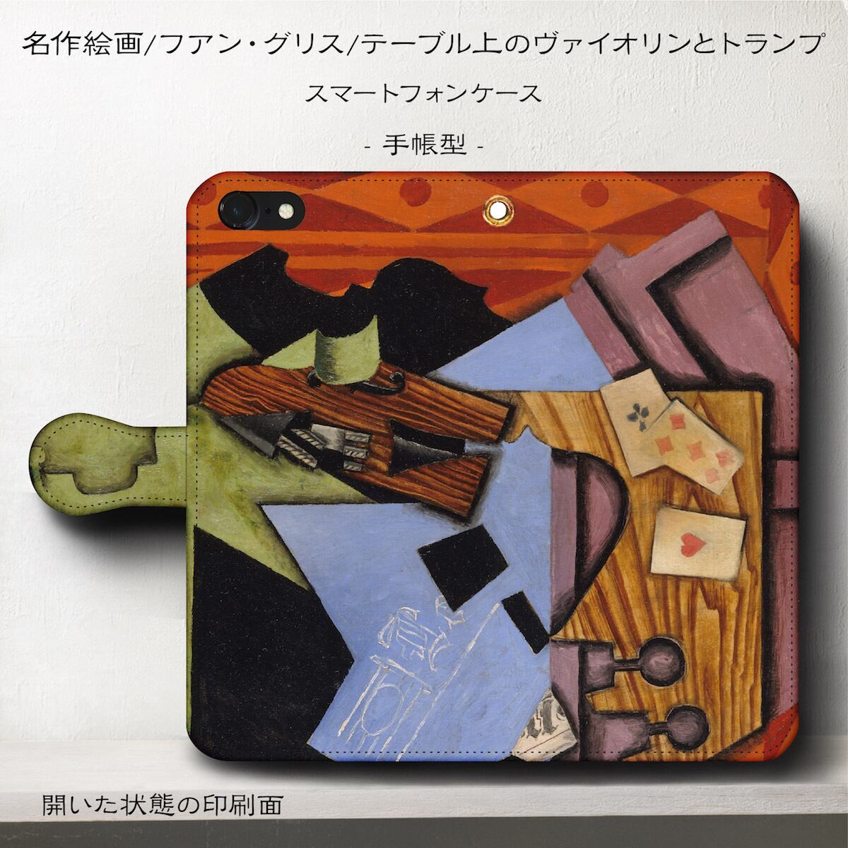 手帳型 ケース スマホ ケース フアン グリス テーブル上のヴァイオリンとトランプ iPhone8 ケース iPhone X ケース Android ケース Android Xperia | 個性派スマホケース NatureMate