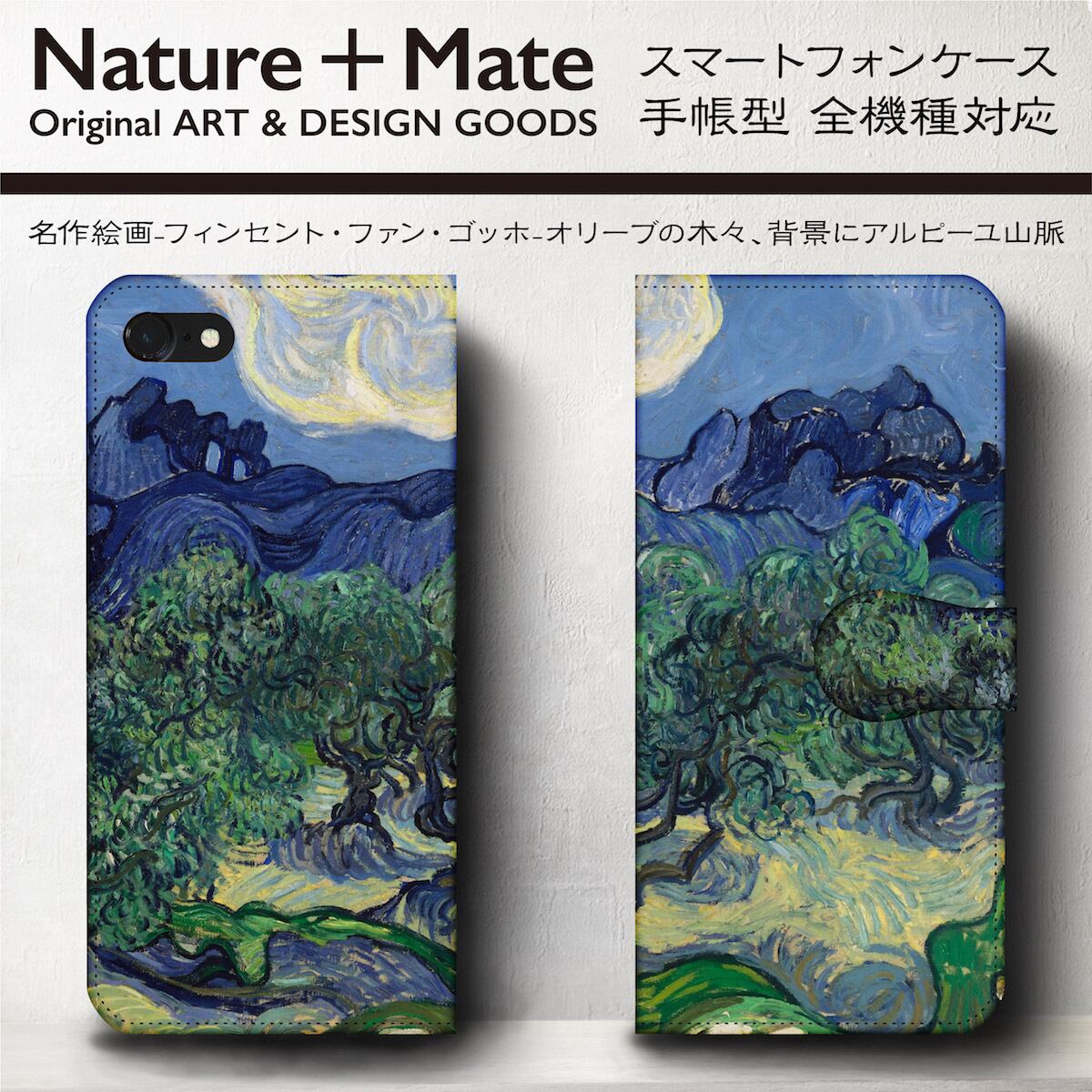 手帳型 ケース スマホ ケース フィンセント ファン ゴッホ 木々 背景にアルピーユ山脈 iPhone8 ケース iPhone X ケース Android ケース | 個性派スマホケース NatureMate