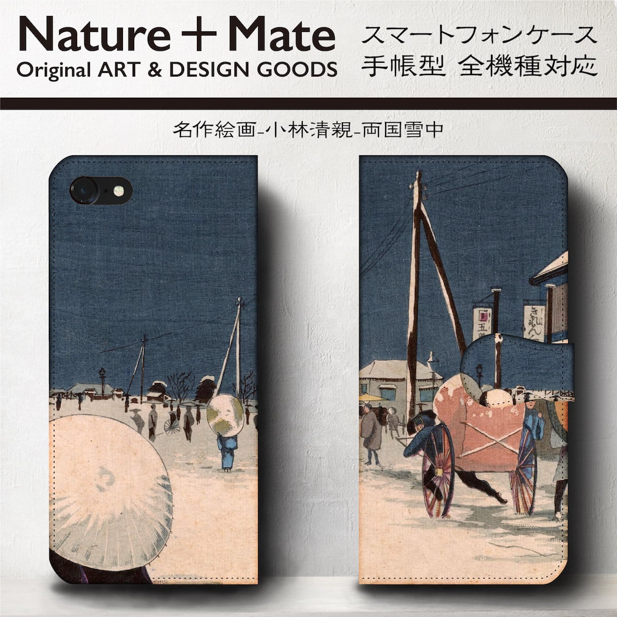 スマホケース 手帳型 iPhone8 iPhone? iPhone7 iPhone6 ケース Xperia AQUOS GALAXY 小林清親 両国雪中 レディース アート 個性的 | 個性派スマホケース NatureMate