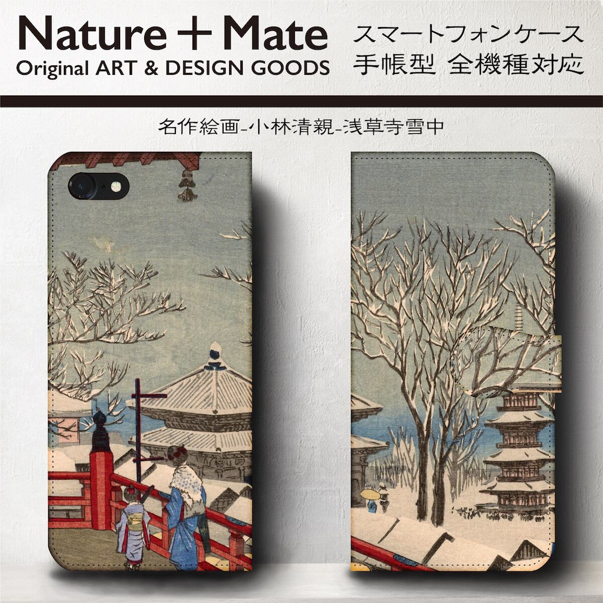 スマホケース 手帳型 iPhone8 iPhone? iPhone7 iPhone6 ケース Xperia AQUOS GALAXY 小林清親 浅草寺雪中 レディース アート 個性的 | 個性派スマホケース NatureMate
