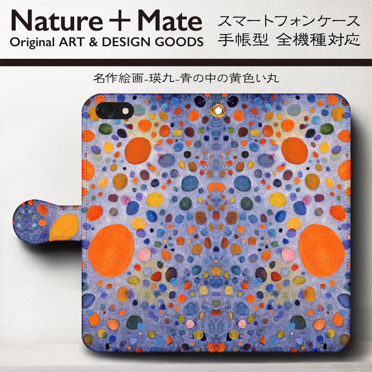 スマホケース 手帳型 iPhone8 iPhone? iPhone7 iPhone6 ケース Xperia AQUOS GALAXY 瑛九 青の中の黄色い丸 レディース アート 個性的 | 個性派スマホケース NatureMate