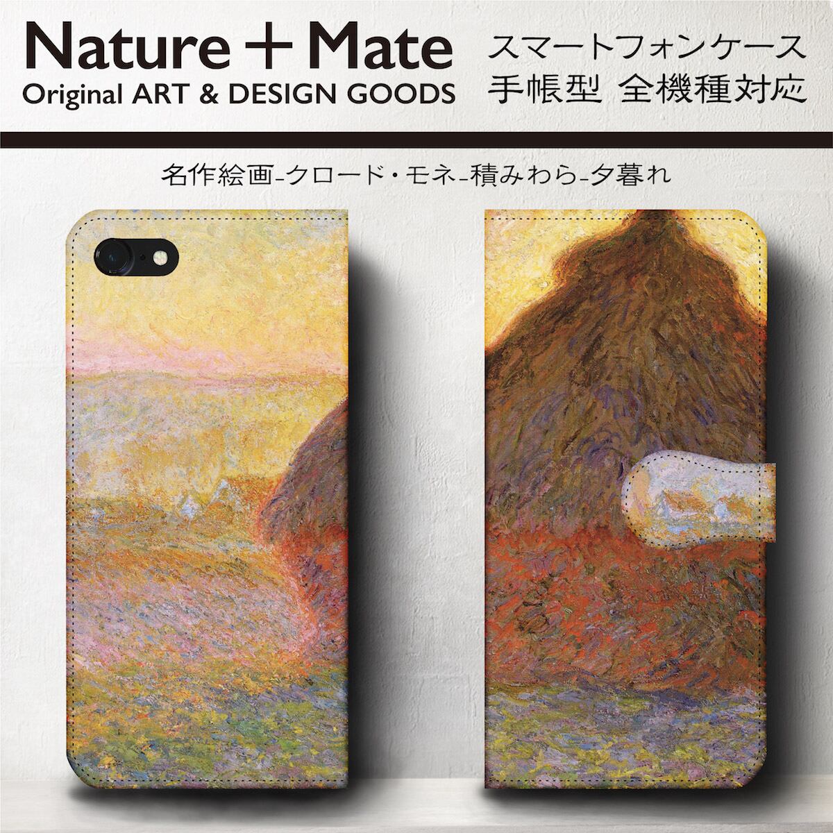 スマホケース 手帳型 iPhone8 iPhone? iPhone7 iPhone6 ケース Xperia AQUOS GALAXY クロード・モネ 積みわら 夕暮れ | 個性派スマホケース NatureMate