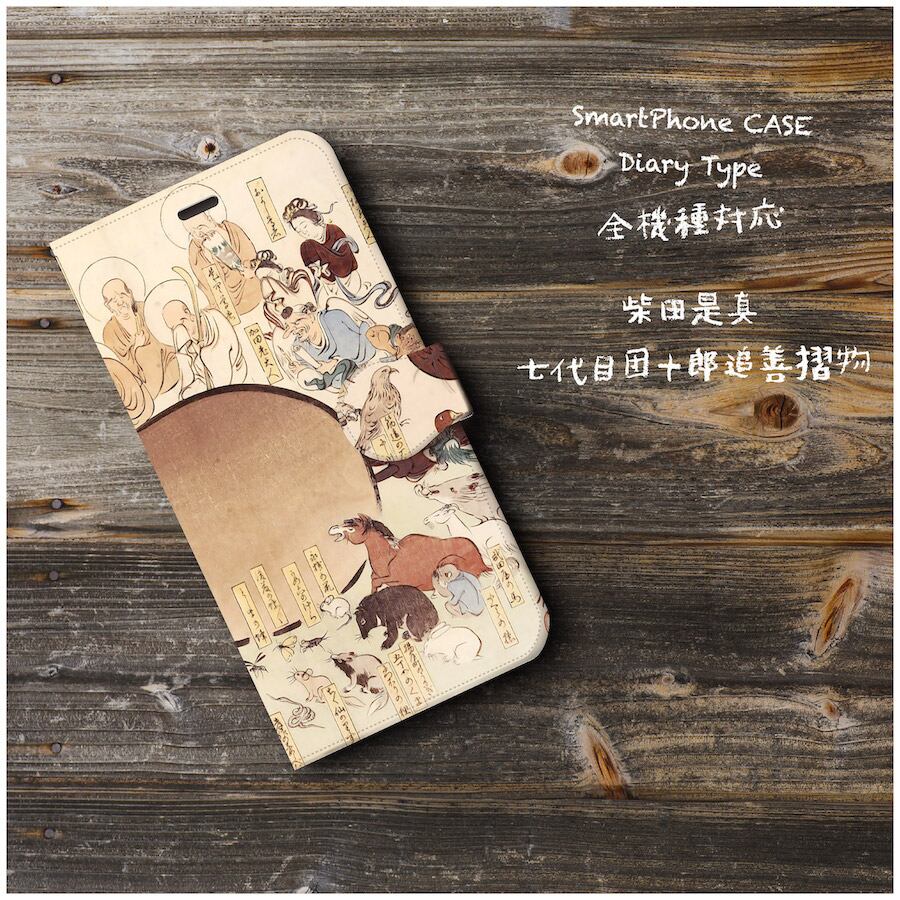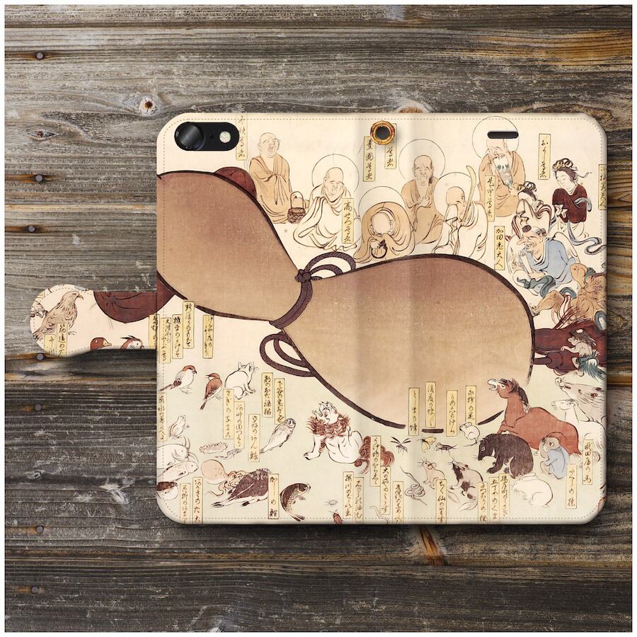 iPhone5 ケース iPhone5s スマホケース 全機種対応 手帳型 絵画 ケース 人気 あいふぉん ケース 丈夫 耐衝撃 柴田是真 七代目団十郎追善摺物 瓢箪涅槃図 | 個性派スマホケース NatureMate
