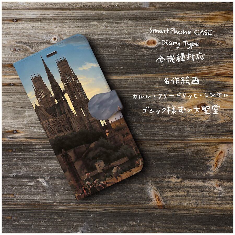 iPhoneX ケース iPhoneXS スマホケース 手帳型 絵画 全機種対応 ケース 人気 TPU レザー ケース 丈夫 耐衝撃 カルル フリードリッヒ シンケル ゴシック様式の大聖堂 | 個性派スマホケース NatureMate