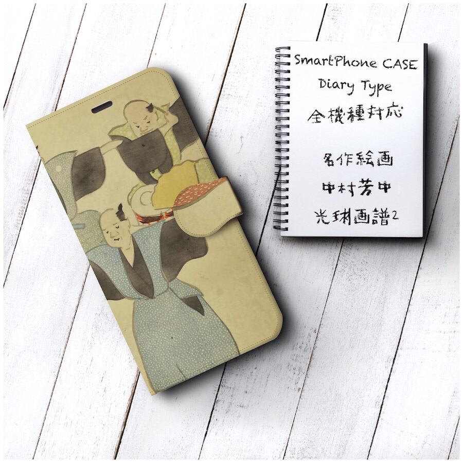 iPhone8Plus ケース iPhone7Plus アンドロイド スマホケース 手帳型 絵画 全機種対応 ケース 人気 あいふぉん 中村芳中 光琳画譜2 | 個性派スマホケース NatureMate
