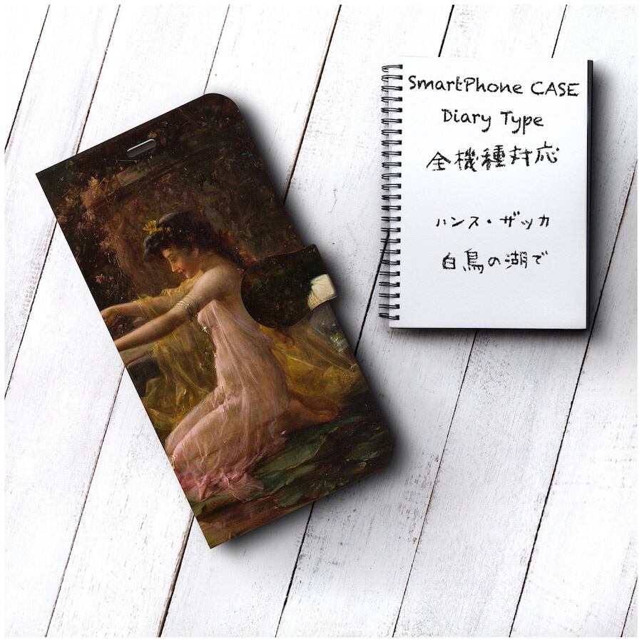 iPhone XR ケース Arrows スマホケース 手帳型 絵画 全機種対応 ケース 人気 あいふぉん ケース 丈夫 耐衝撃 ハンス ザッカ 白鳥の湖で | 個性派スマホケース NatureMate