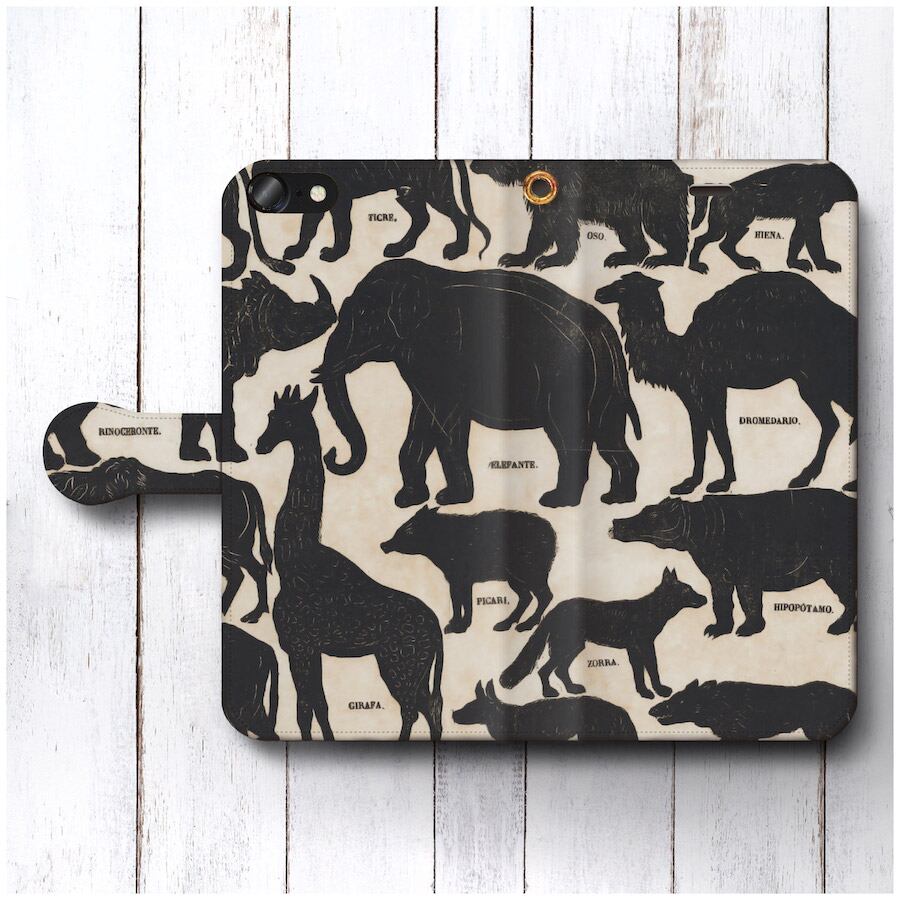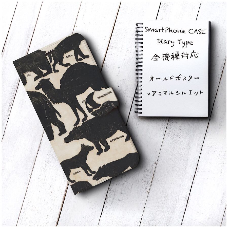 iPhoneSE ケース スマホケース 手帳型 全機種対応 ケース おしゃれ 人気 ケース 絵画 オールドポスター アニマルシルエット