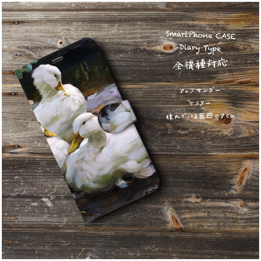 iPhoneX ケース iPhoneXS スマホカバー 手帳型 絵画 全機種対応 ケース 人気 あいふぉん ケース 丈夫 耐衝撃 アレクサンダー ケスター 休んでいる五匹のアヒル | 個性派スマホケース NatureMate