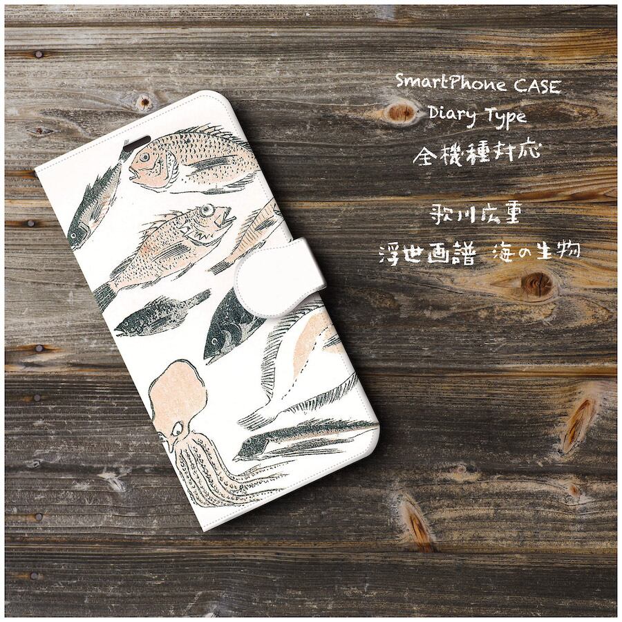 iPhone6sPlus ケース スマホケース 手帳型 絵画 レトロ 全機種対応 ケース 人気 ケース 丈夫 耐衝撃 歌川広重 浮世画譜 海の生物
