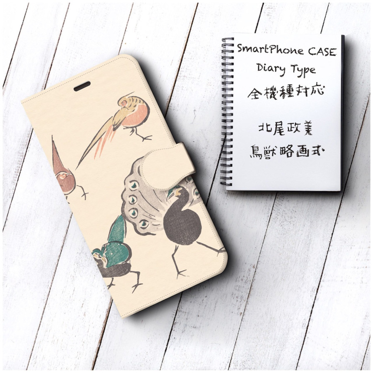 iPhone6s ケース iPhone6 アンドロイド スマホケース 手帳型 絵画 全機種対応 ケース 人気 あいふぉん 北尾政美 鳥獣略画式 全 鍬形?斎9 | 個性派スマホケース NatureMate