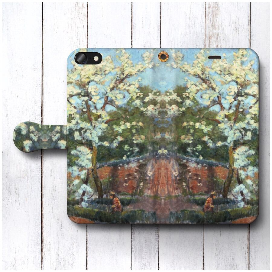 iPhone5 ケース iPhone5s スマホケース 全機種対応 手帳型 絵画 ケース 人気 あいふぉん ケース 丈夫 耐衝撃 アンリ ル シダネル 桜の木の下で | 個性派スマホケース NatureMate