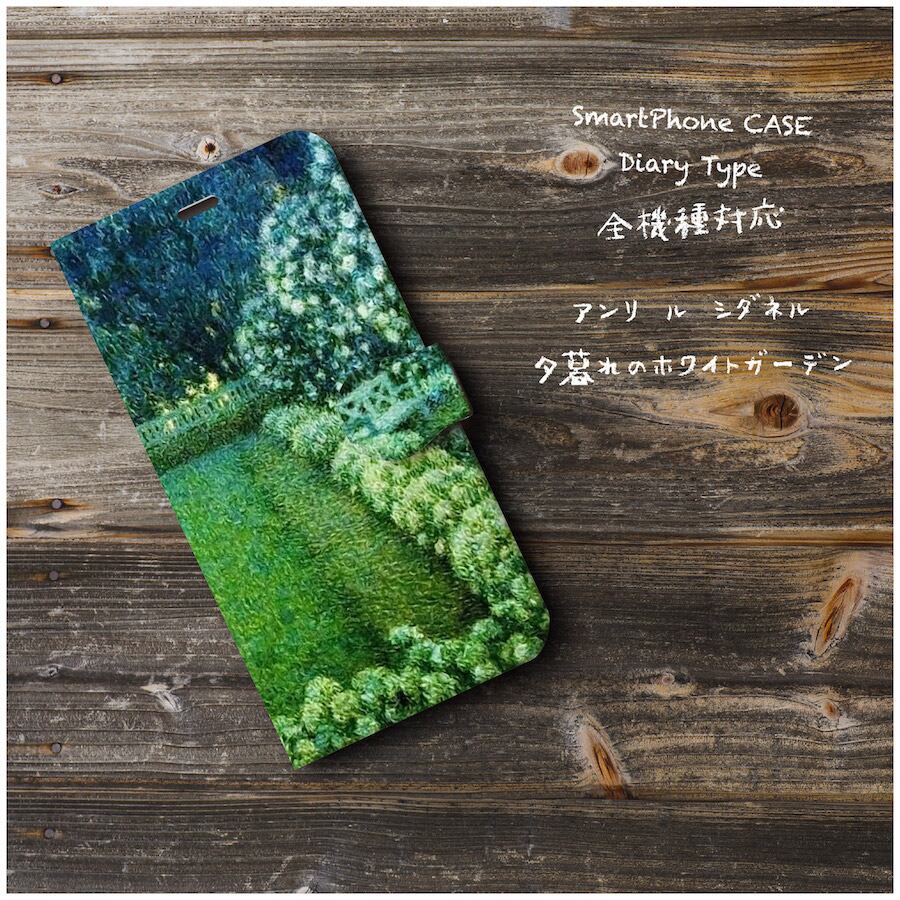 iPhoneXSmax ケース モトローラ スマホカバー 手帳型 絵画 全機種対応 ケース 人気 あいふぉん ケース 丈夫 耐衝撃 アンリ ル シダネル 夕暮れのホワイトガーデン | 個性派スマホケース NatureMate