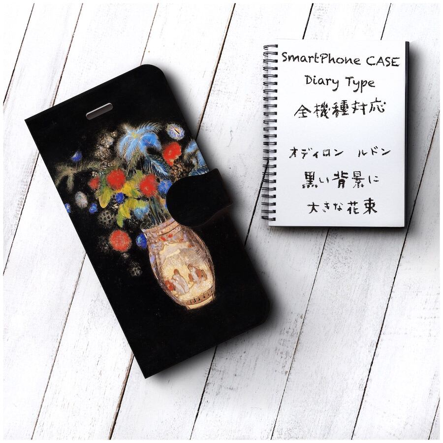 iPhone7 ケース iPhone8 スマホケース 手帳型 絵画 全機種対応 ケース 人気 あいふぉん ケース 丈夫 耐衝撃 オディロン ルドン 黒い背景に大きな花束 | 個性派スマホケース NatureMate