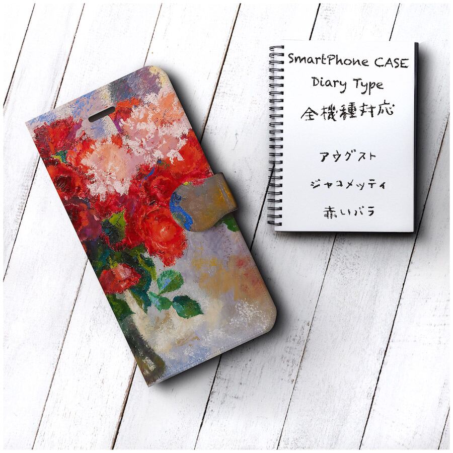 iPhoneSE ケース アンドロイド スマホケース 手帳型 絵画 全機種対応 ケース 人気 あいふぉん アウグスト ジャコメッティ 赤いバラ