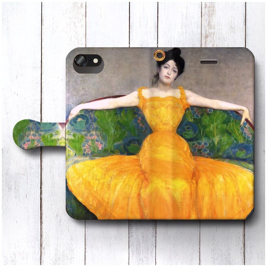 SOFTBANK ケース AU スマホカバー 手帳型 絵画 全機種対応 ケース 人気 あいふぉん ケース 丈夫 耐衝撃 Max Kurzweil 黄色のドレスを着た女性 | 個性派スマホケース NatureMate