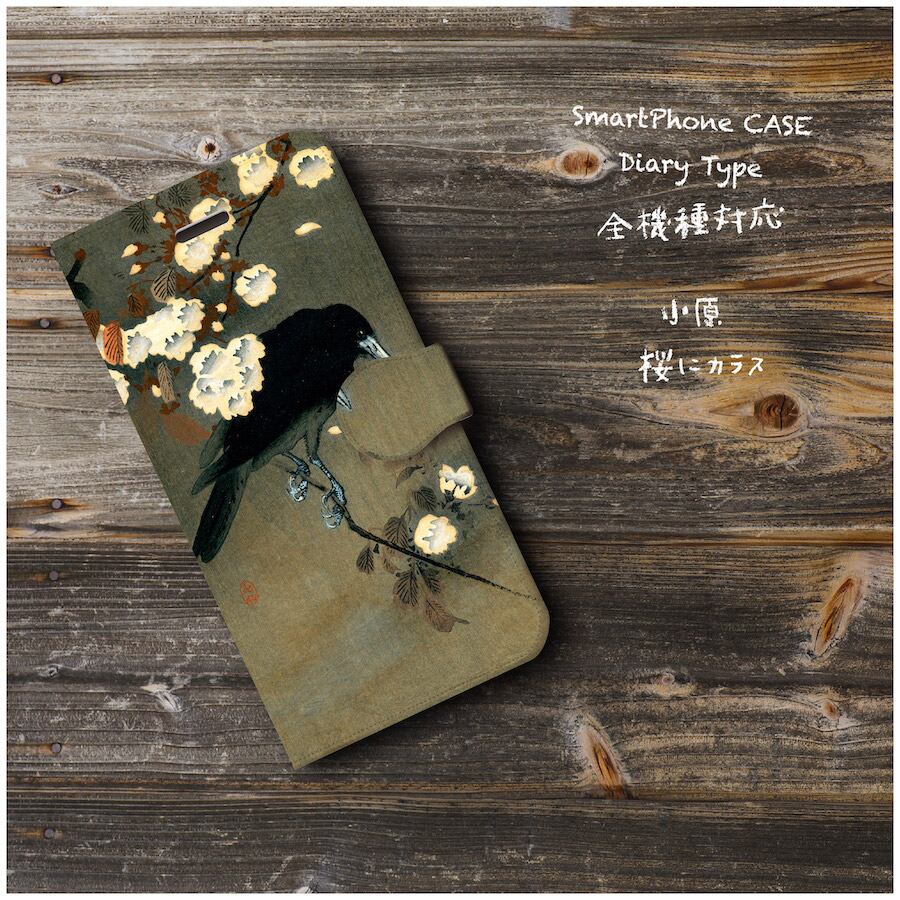 Galaxy ケース ギャラクシー アンドロイド スマホケース 手帳型 絵画 全機種対応 ケース 人気 あいふぉん 小原古邨 桜にカラス
