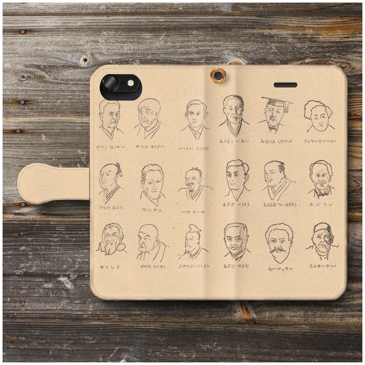 iPhone7 ケース iPhone8 スマホケース 手帳型 絵画 全機種対応 ケース 人気 あいふぉん ケース 丈夫 耐衝撃 略画事典 ゆるかわいい著名人のイラスト2 | 個性派スマホケース NatureMate