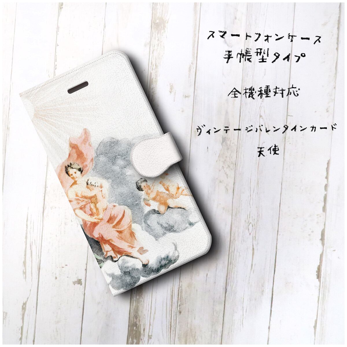 SOFTBANK ケース AU スマホカバー 手帳型 絵画 全機種対応 ケース 人気 あいふぉん ケース 丈夫 耐衝撃 ?ィンテージバレンタインカード 天使 | 個性派スマホケース NatureMate
