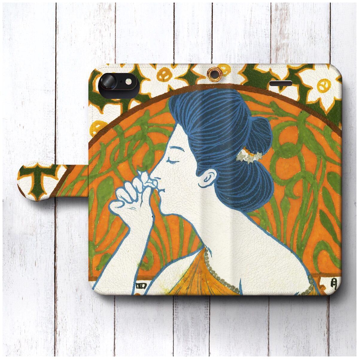 iPhone8Plus ケース iPhone7Plus スマホケース 手帳型 全機種対応 ケース おしゃれ 人気 ケース 絵画 橋口五葉 花の香をかぐ女 絵はがき | 個性派スマホケース NatureMate