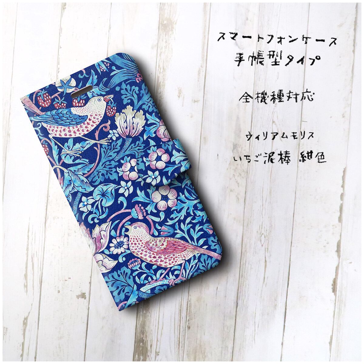 Aquos sence ケース アクオス スマホケース 手帳型 絵画 レトロ 全機種対応 ケース 人気 ケース 丈夫 耐衝撃 ウィリアムモリス いちご泥棒 紺色 | 個性派スマホケース NatureMate