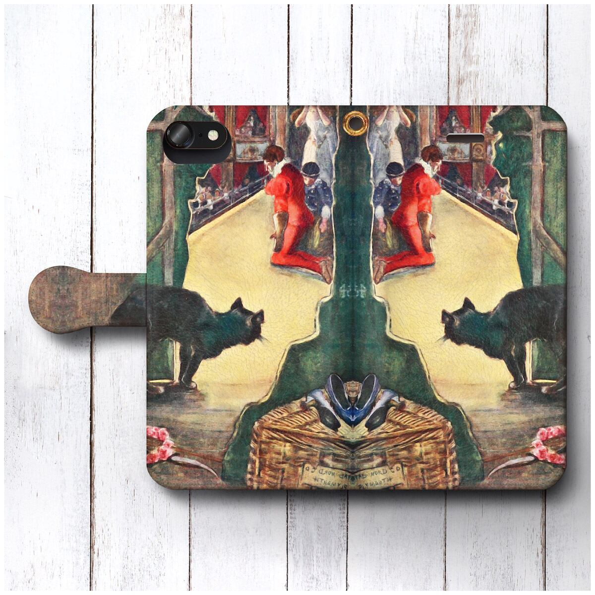 SOFTBANK ケース AU スマホケース 全機種対応 手帳型 絵画 ケース 人気 あいふぉん ケース 丈夫 耐衝撃 猫 古いイラスト アンティークポスター | 個性派スマホケース NatureMate