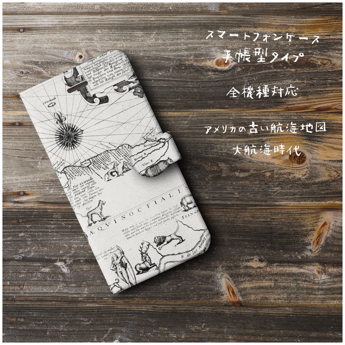 iPhone5 ケース iPhone5s スマホカバー 手帳型 絵画 全機種対応 ケース 人気 あいふぉん ケース 丈夫 耐衝撃 アメリカの古い航海地図 大航海時代 | 個性派スマホケース NatureMate