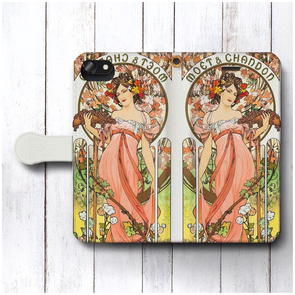 iPhone7 ケース iPhone8 スマホケース 手帳型 絵画 レトロ 全機種対応 ケース 人気 ケース 丈夫 耐衝撃 アルフォンス ミュシャ モエエシャンドン | 個性派スマホケース NatureMate