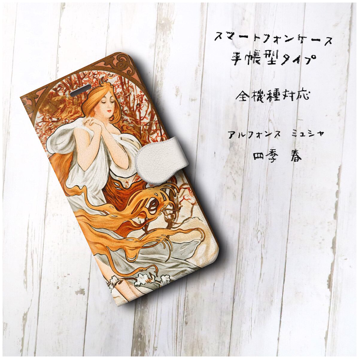 iPhone XR ケース Arrows スマホケース 手帳型 絵画 全機種対応 ケース 人気 あいふぉん ケース 丈夫 耐衝撃 アルフォンス ミュシャ 四季 春 | 個性派スマホケース NatureMate