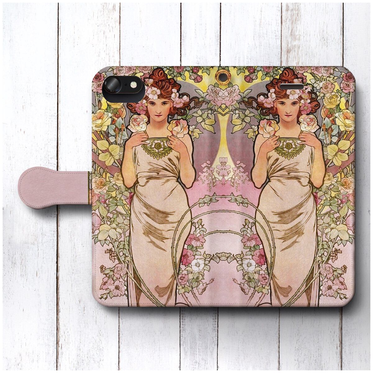 iPhoneX ケース iPhoneXS スマホカバー 手帳型 絵画 全機種対応 ケース 人気 あいふぉん ケース 丈夫 耐衝撃 アルフォンス ミュシャ 四つの花 バラ | 個性派スマホケース NatureMate