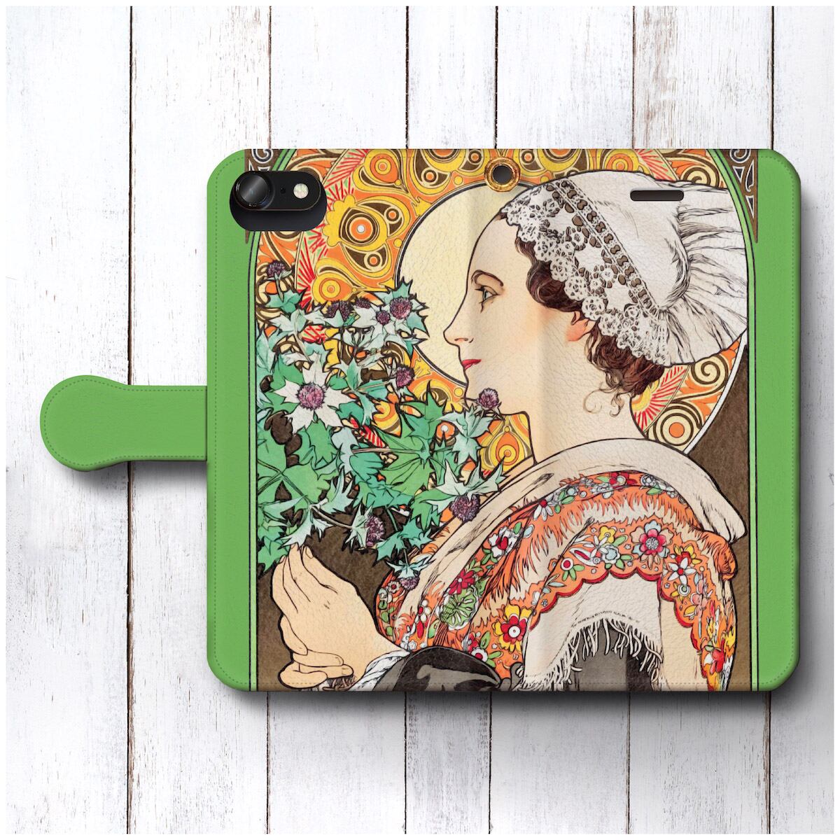 iPhoneXSmax ケース モトローラ スマホカバー 手帳型 絵画 全機種対応 ケース 人気 あいふぉん ケース 丈夫 耐衝撃 アルフォンス ミュシャ ハマアザミ | 個性派スマホケース NatureMate
