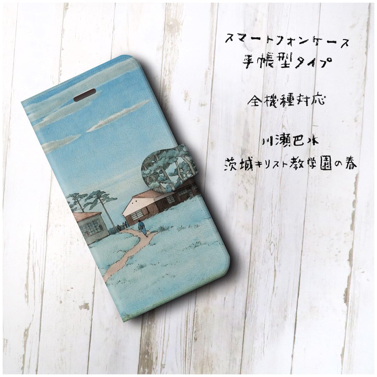Motorola ケース SONY スマホケース 手帳型 絵画 レトロ 全機種対応 ケース 人気 ケース 丈夫 耐衝撃 川瀬巴水 茨城キリスト教学園の春
