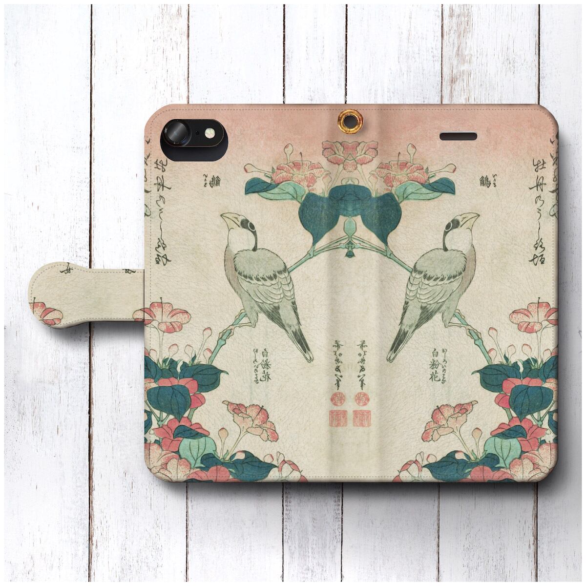iPhone5 ケース iPhone5s スマホケース 全機種対応 手帳型 絵画 ケース 人気 あいふぉん ケース 丈夫 耐衝撃 葛飾北斎 鵤 白粉花 いかる おしろいのはな | 個性派スマホケース NatureMate