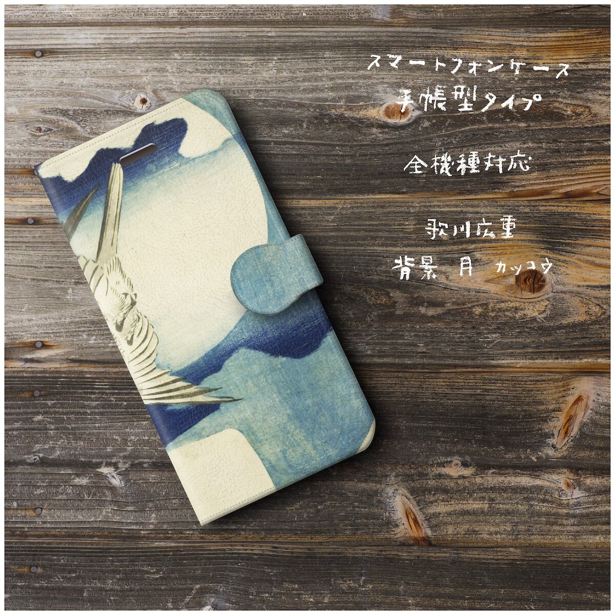 SOFTBANK ケース AU スマホケース 手帳型 絵画 全機種対応 ケース 人気 TPU レザー ケース 丈夫 耐衝撃 歌川広重 背景 月 カッコウ