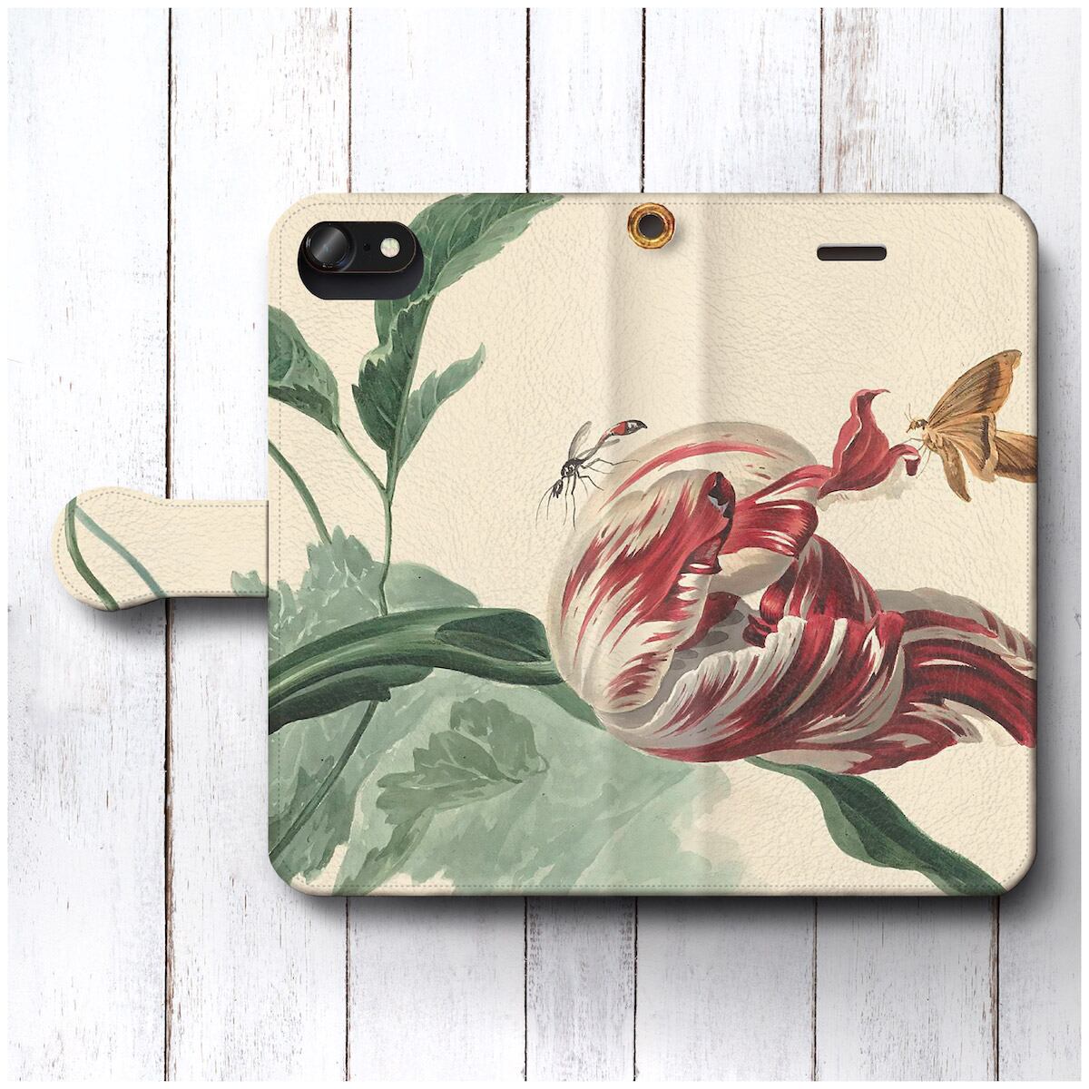 iPhoneSE ケース アンドロイド スマホケース 手帳型 絵画 全機種対応 ケース 人気 あいふぉん チューリップとポピー