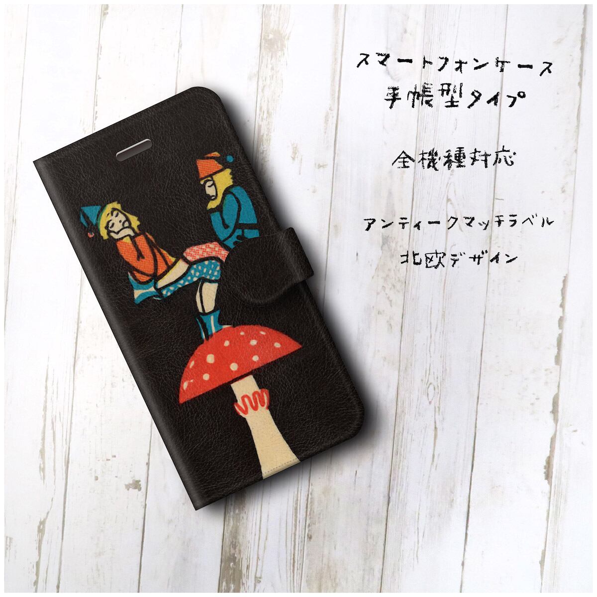 Aquos sence ケース アクオス スマホケース 手帳型 絵画 全機種対応 ケース 人気 あいふぉん ケース 丈夫 耐衝撃 アンティークマッチラベル 北欧デザイン きのこ レトロ | 個性派スマホケース NatureMate