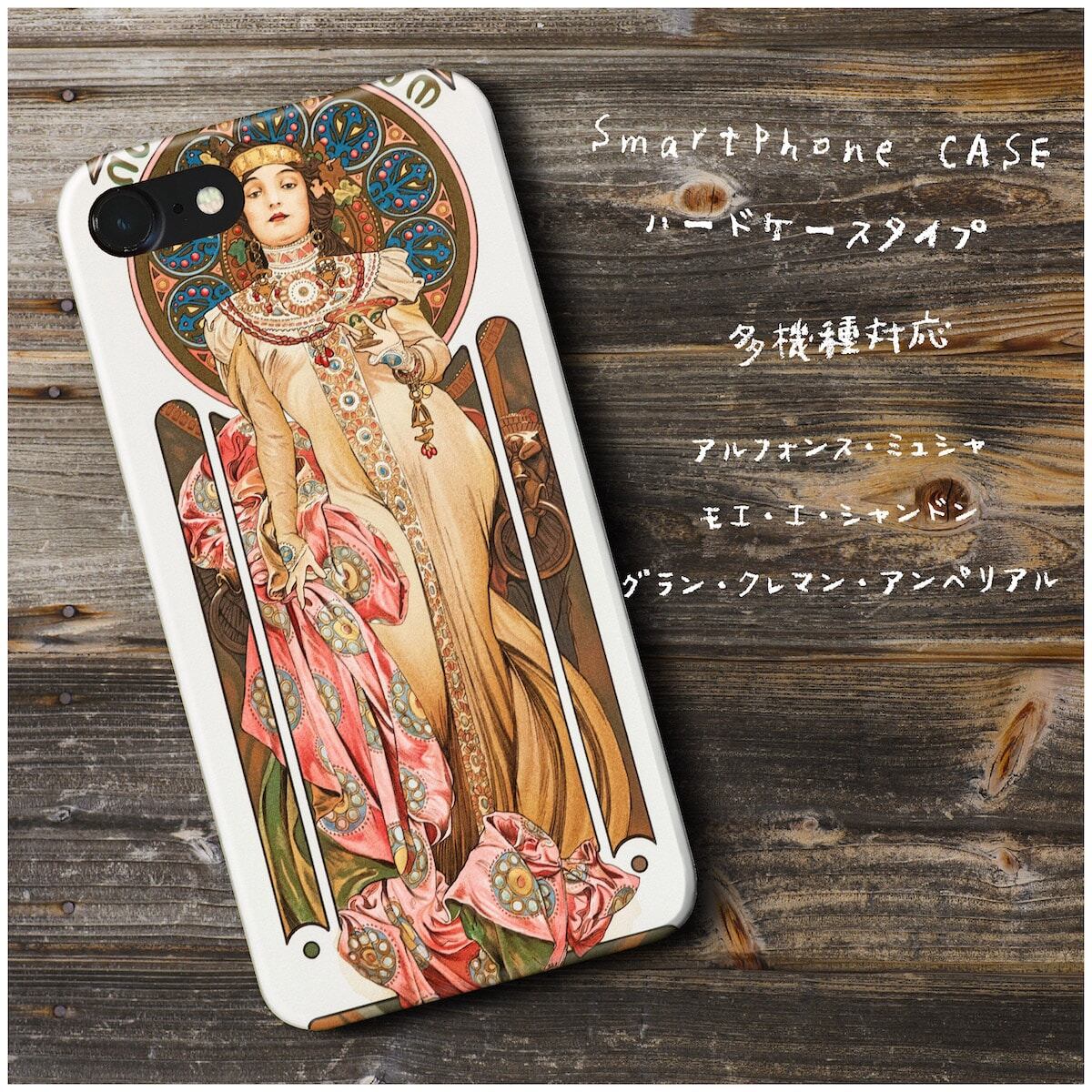 ミュシャ モエ エ シャンドン グラン クレマン アンペリアル 多機種対応 スマホケース 人気 ハードケース ARROWS FIT F-01H